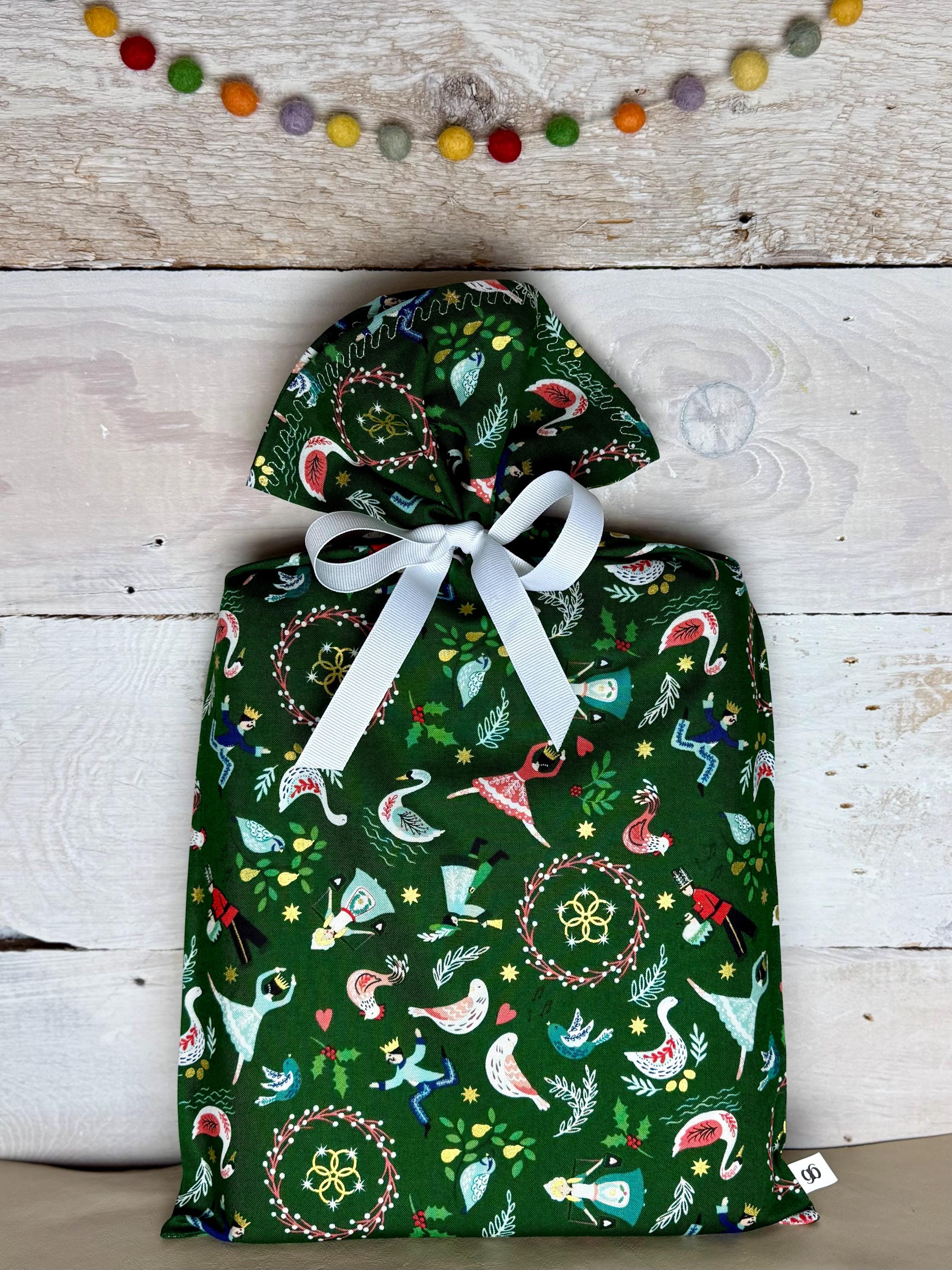 Your moment of guilt: Did you know that in the US alone, we average 4 million tons of gift wrap being thrown away during the holiday season? These bags will help keep waste out of landfills, as most gift wrap is not recyclable. Use these bags over and over, wrap your gifts to your friends with them and hope they gift them back : ) Did we mention saving time using these bags? Pop in your gift and tie the ribbon...no more searching for those scissors that no one ever seems to put back. And then pat yourself on the back for doing Mother Earth a favor.