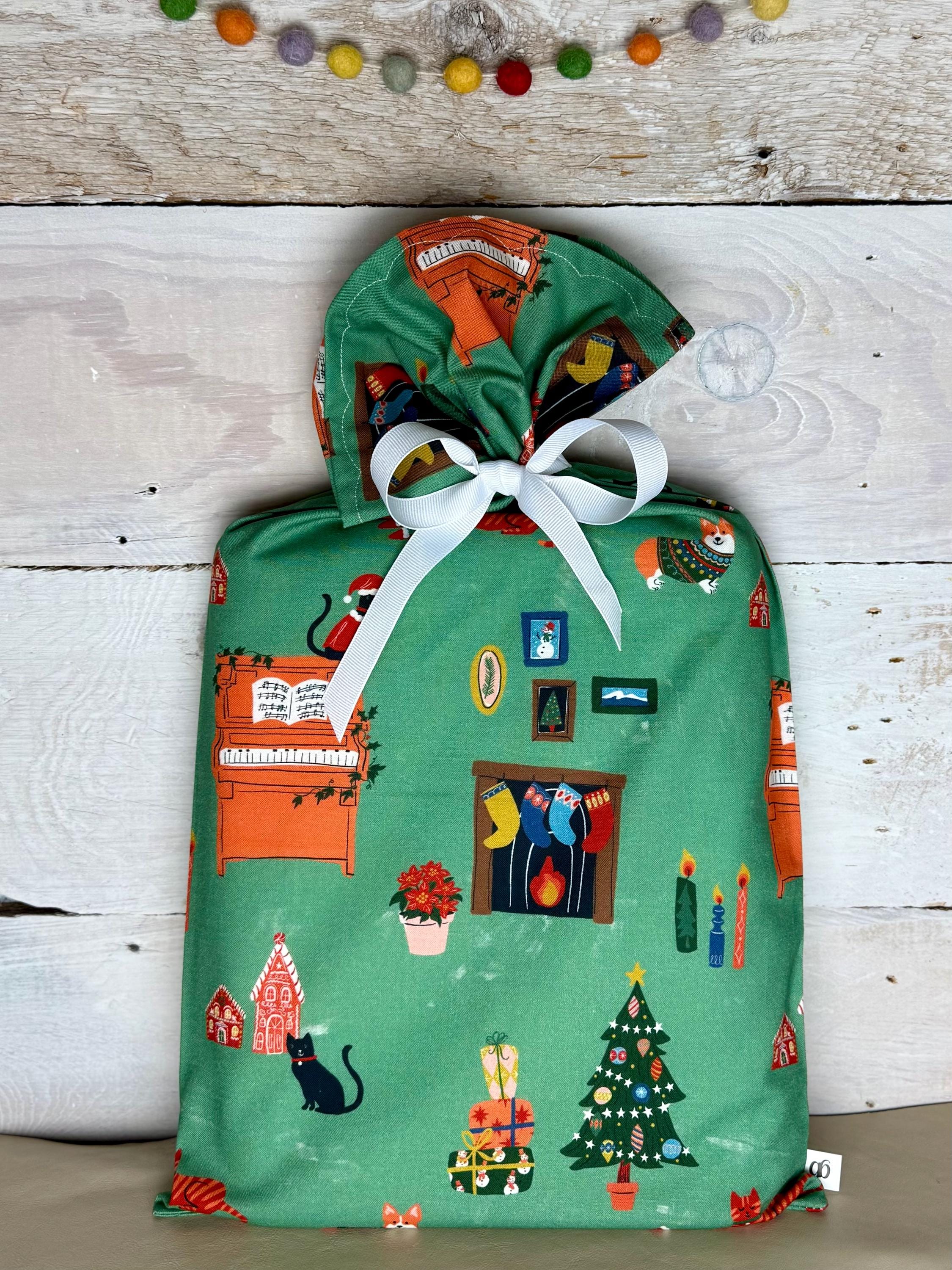 Your moment of guilt: Did you know that in the US alone, we average 4 million tons of gift wrap being thrown away during the holiday season? These bags will help keep waste out of landfills, as most gift wrap is not recyclable. Use these bags over and over, wrap your gifts to your friends with them and hope they gift them back : ) Did we mention saving time using these bags? Pop in your gift and tie the ribbon...no more searching for those scissors that no one ever seems to put back. And then pat yourself on the back for doing Mother Earth a favor.