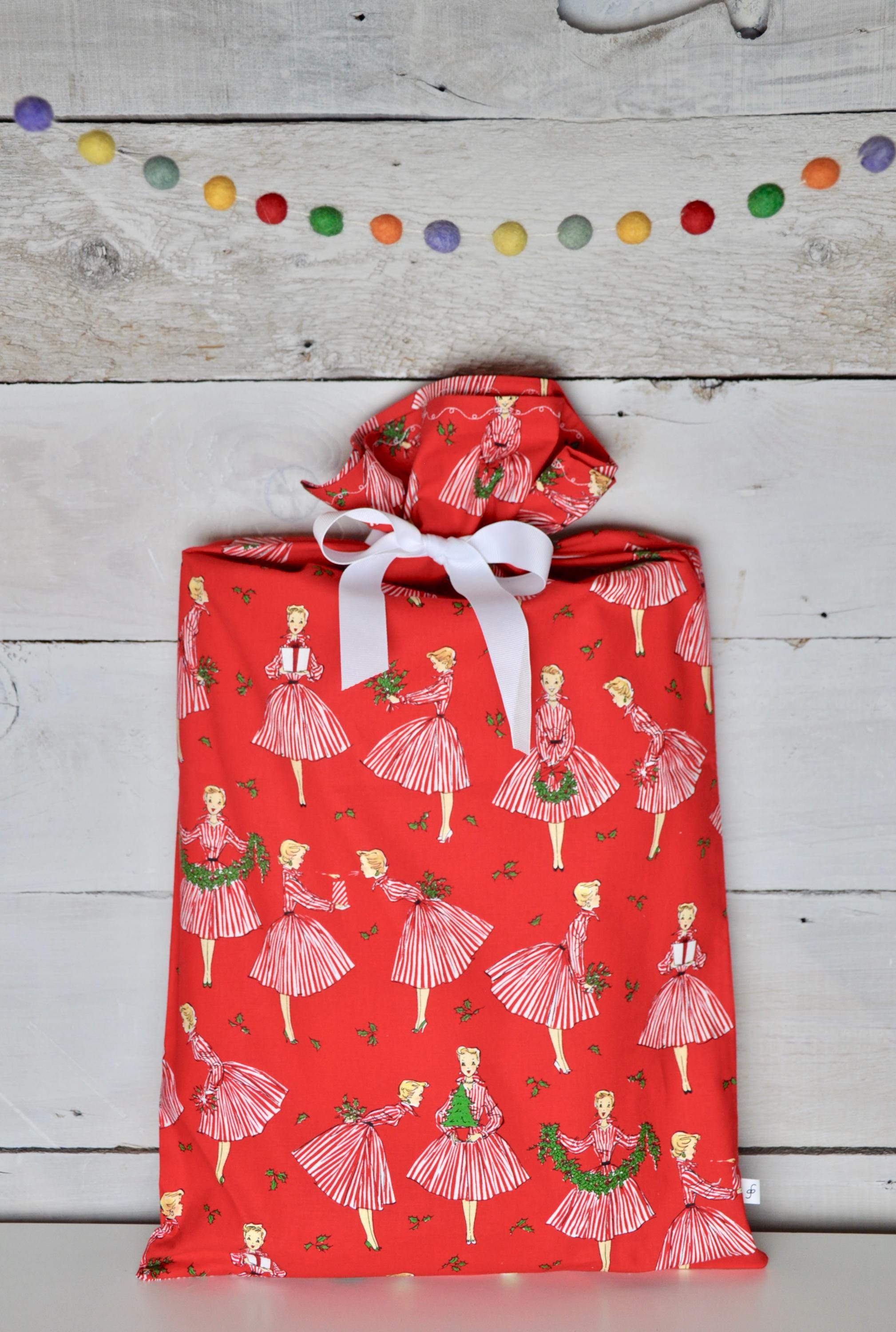 Reusable Fabric Gift Bag -- Holiday Hostess
